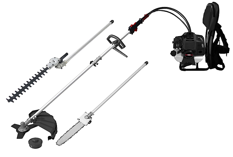 Elagueuse, taille-haie, dresse-bordure et débroussailleuse : un seul outil pour 4 fonctions ! 4 fois moins de place utilisée pour autant de tâches réalisées, profitez d’une machine performante et robuste ! Moteur d’une puissance de 1500W pour une efficacité accrue quelles que soient les tâches effectuées. Facile d’utilisation grâce à son sac à dos, il vous permet d’entretenir votre jardin avec un seul moteur. Le manche sécable et les 4 embouts différents vous permettent de réaliser tous les travaux d’entretien du jardin et un rangement facilité des outils. Permet de travailler efficacement sur petites et grandes surfaces. Idéal pour tout travaux extérieurs dans le jardin. Profitez d’une bobine de fil et d’une lame 3 dents supplémentaires gratuites.